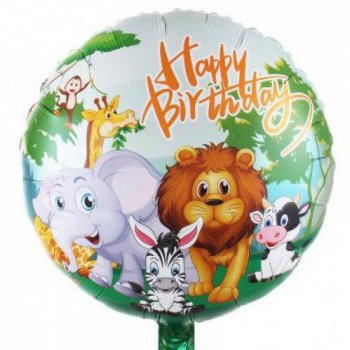 Кулька фольгована наповнена гелієм Happy birthday (звірята)